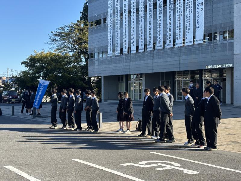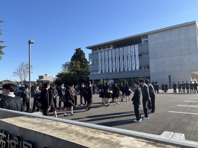 朝陽がまぶしい中、これだけたくさんの人々に出迎えられると、さすがに登校してくる生徒もなんだか気恥ずかしくなってしまいます。さわやかな11月の始まりの朝となりました。
