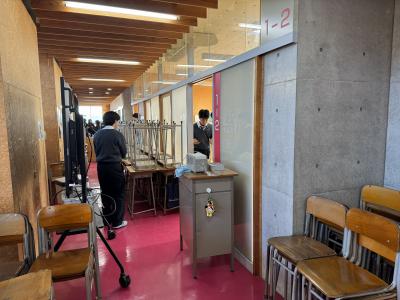 また、理科室や家庭科室など特別教室のカーテンクリーニングに向けた取り外し作業も併せて実施しました。