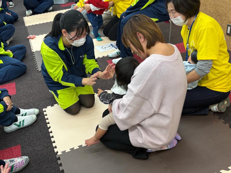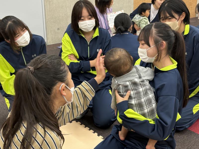 当日は、生後7か月の赤ちゃんも参加してくださり、抱っこ体験や赤ちゃんの様子を間近で見せていただきました。ま
