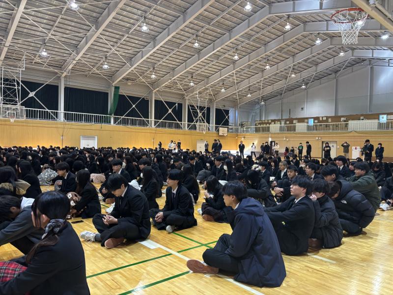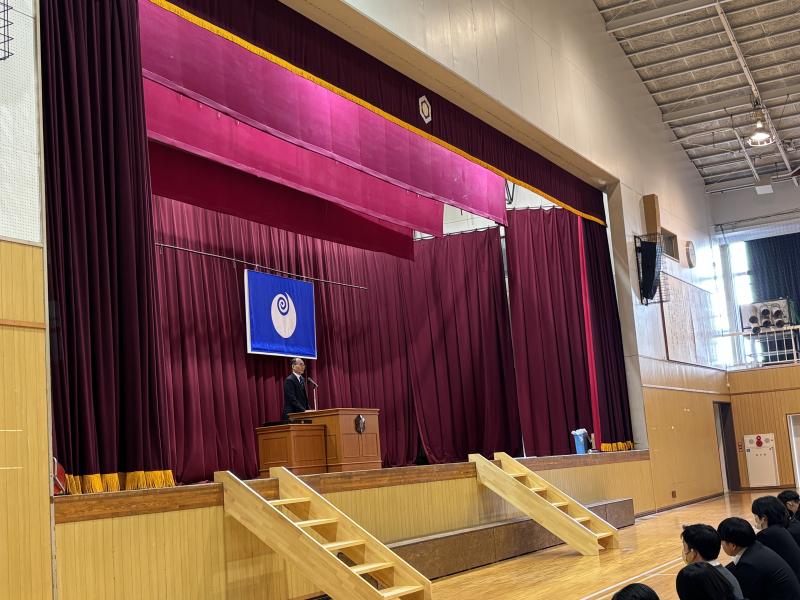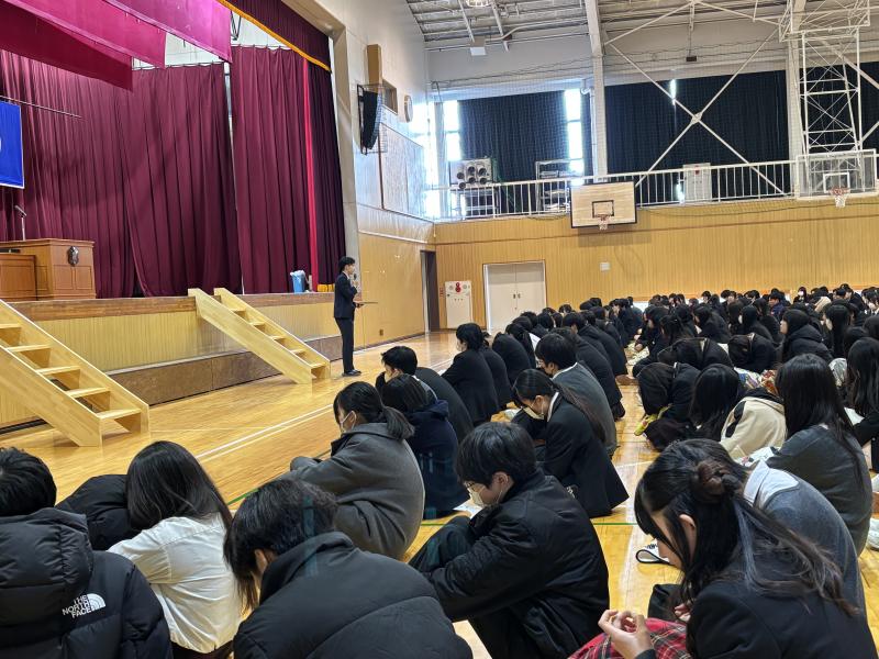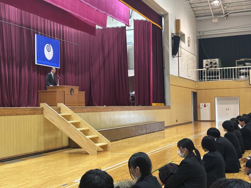 1月8日(木)冬季休業明け集会を行いました。澄み切った青空の下、元気に登校してきた生徒たち。しんしんと冷え込む体育館に静寂が漂い、校長先生の話に生徒たちが真摯に耳を傾ける様子をとても誇らしく感じました。