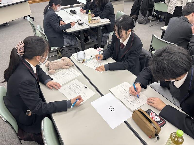 12月26日(金)牛久市中央生涯学習センターにて開催された「高等学校等における楽しい学校づくりに向けたワーキングチーム」(第2回)に、生徒会役員の3名が参加しました。