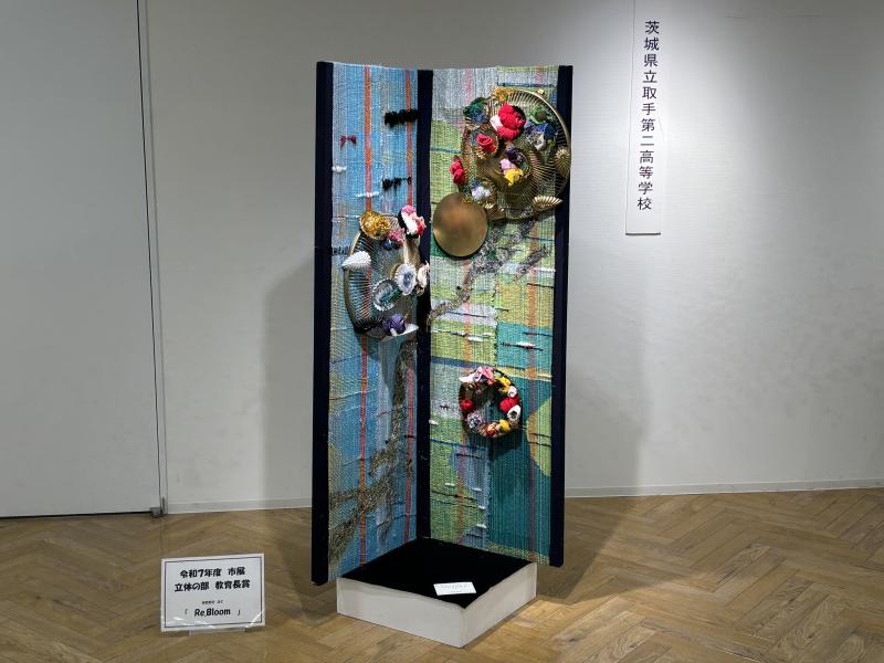 1/9(金)~1/13(火)、アトレ取手4Fとりで市民ギャラリーにおいて、取手市によって開催された展覧会「とりでスクール・アートフェスティバル2026」に参加しました。家政科3年生のさをり織り選択者7名のよる共同作品「Re.Bloom -ふたたび さく-」と、美術部の生徒作品を展示しました。