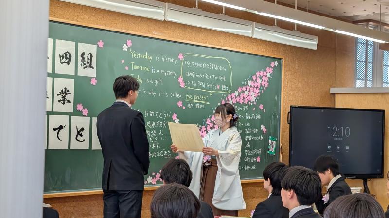 続いて、修了式。校長先生からは一年間を振り返って、生徒の皆さんへの感謝の言葉が述べられました。