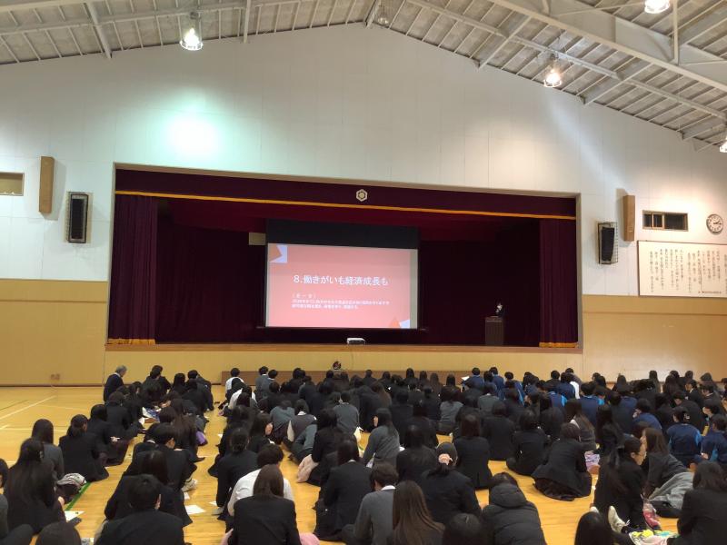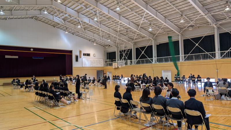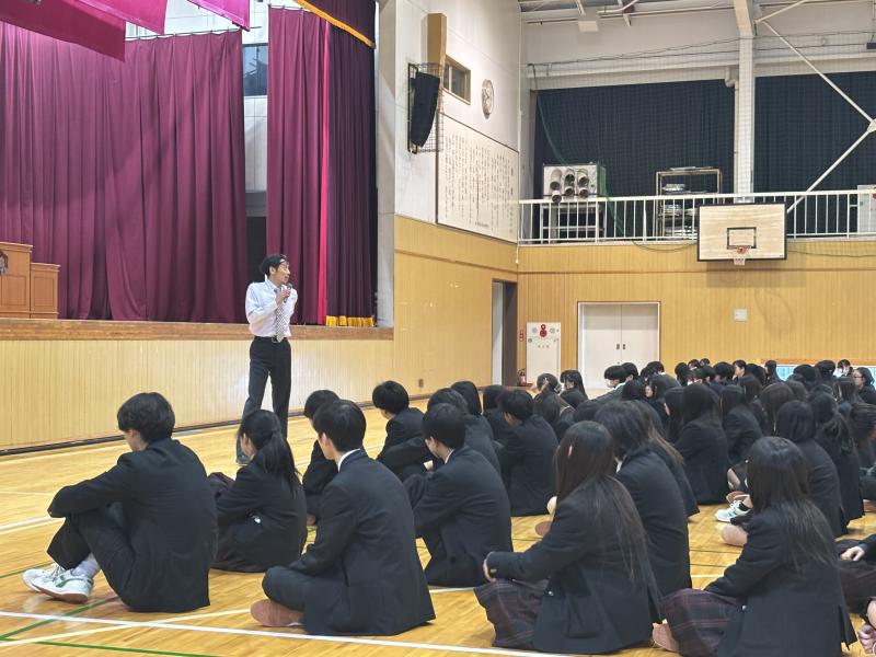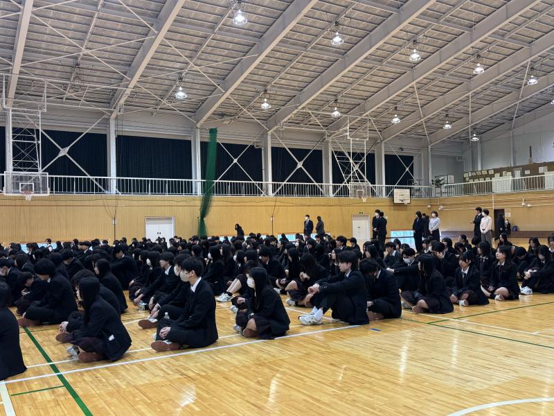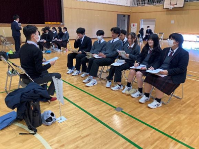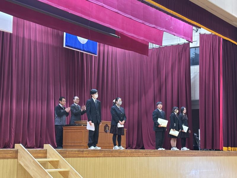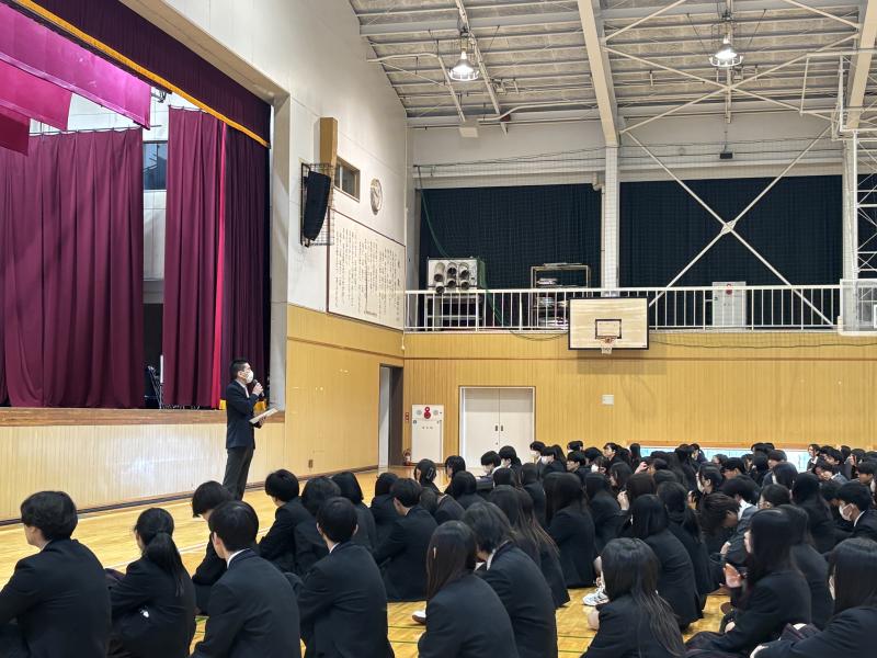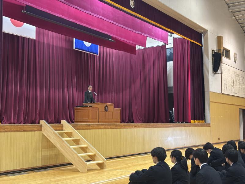 次に、生徒支援部長からのお話。今年度をふり返って、自分はどうだったか・・・自分で思っている反省点を次年度改める気持ちをもってほしい、それが成長につながるはず。それぞれの学年にむけて、メッセ―ジを語りかけてくれました。