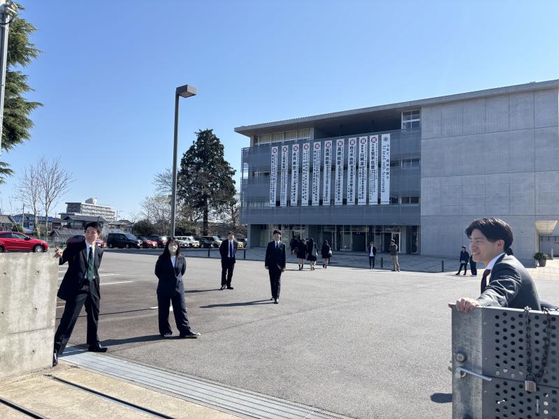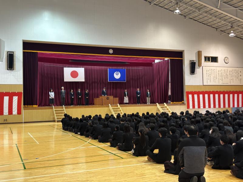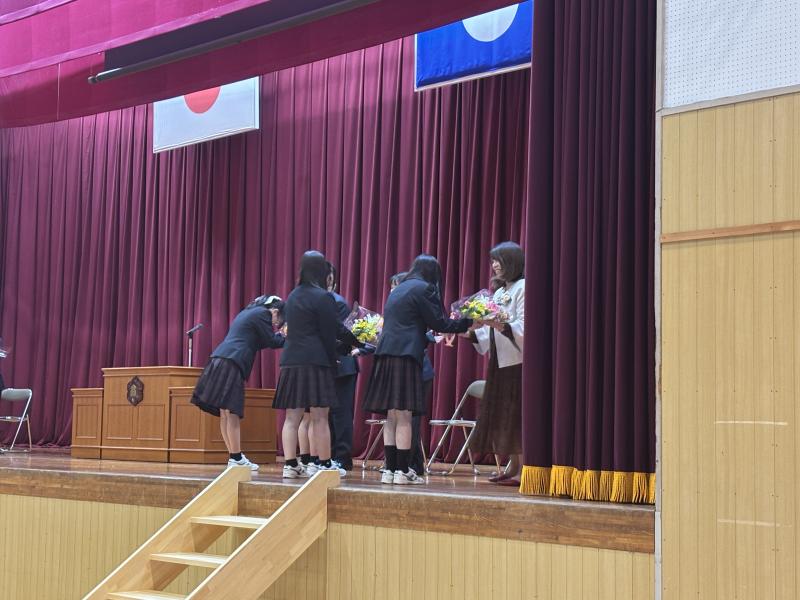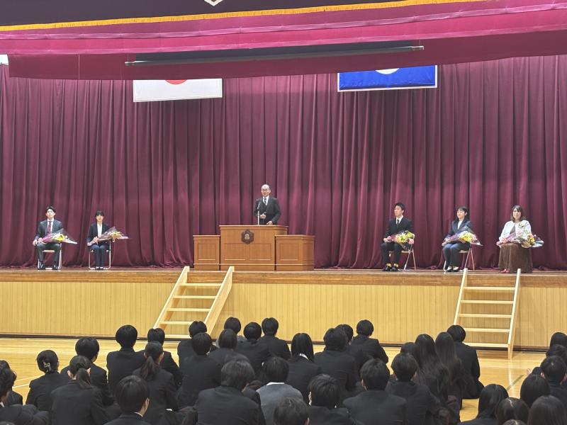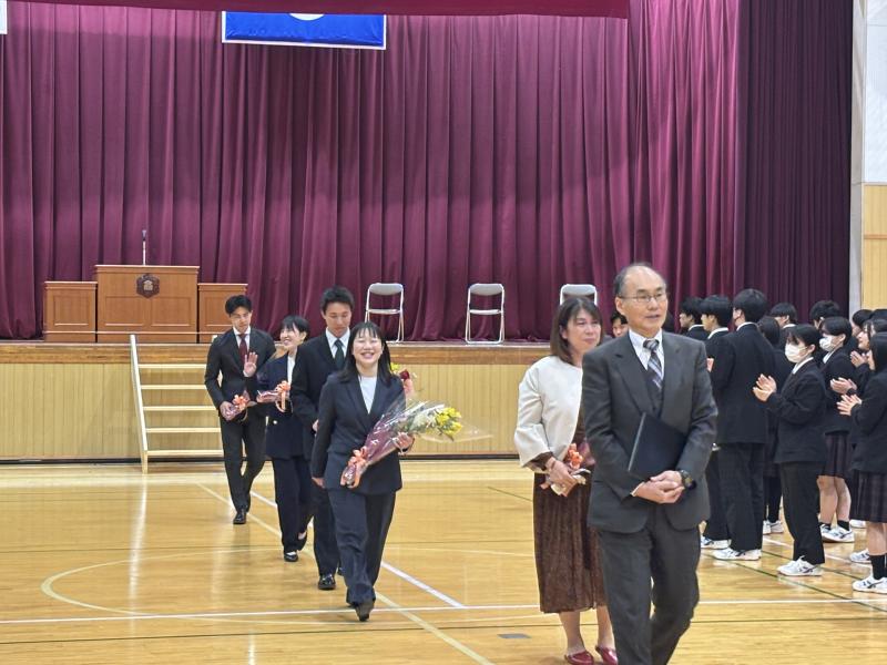 本校にてご尽力いただいた先生方の離任式を行いました。生徒の登校時には、離任する先生方が暖かく迎えてくださいました。