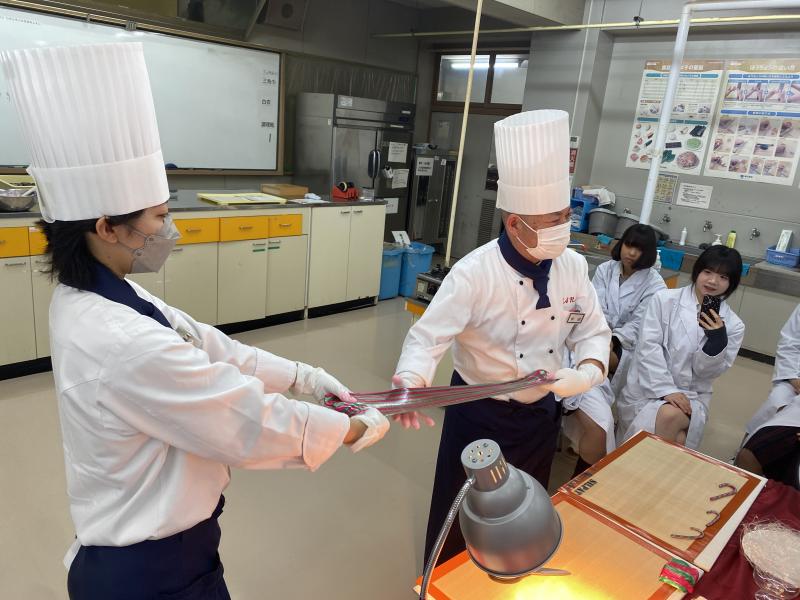 普段、テレビや動画でしか見た事のない技術を目の前で見たり触れたりすることができ、生徒たちはとても感動していました。貴重な経験をさせていただいた華調理製菓専門学校の先生方、ありがとうございました。